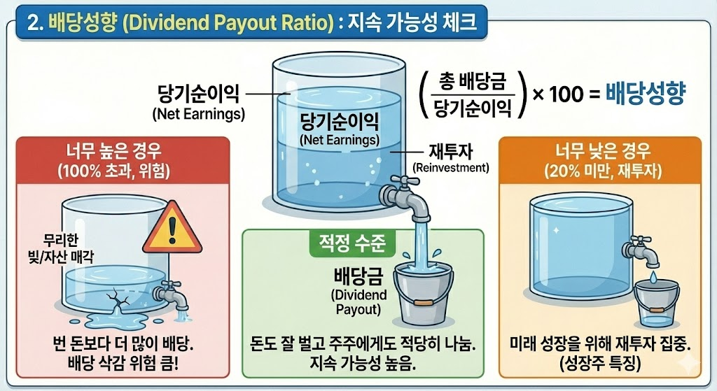 2. 배당성향 (Dividend Payout Ratio): 지속 가능성 체크