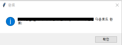 messagebox.showinfo("완료", f"{video_stream.title} 다운로드 완료!")