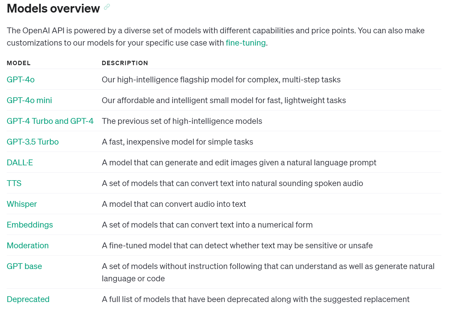 - Chat GPT API Model : https://platform.openai.com/docs/models