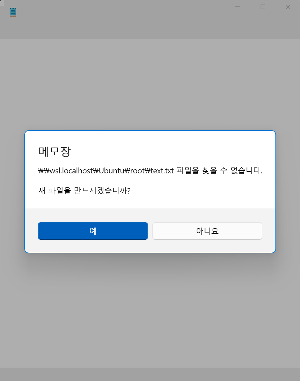 WSL에서 Windows의 메모장 프로그램을 열고 싶다면 다음과 같이 입력합니다.