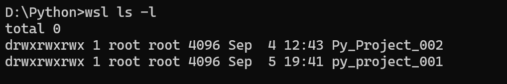 wsl ls -l