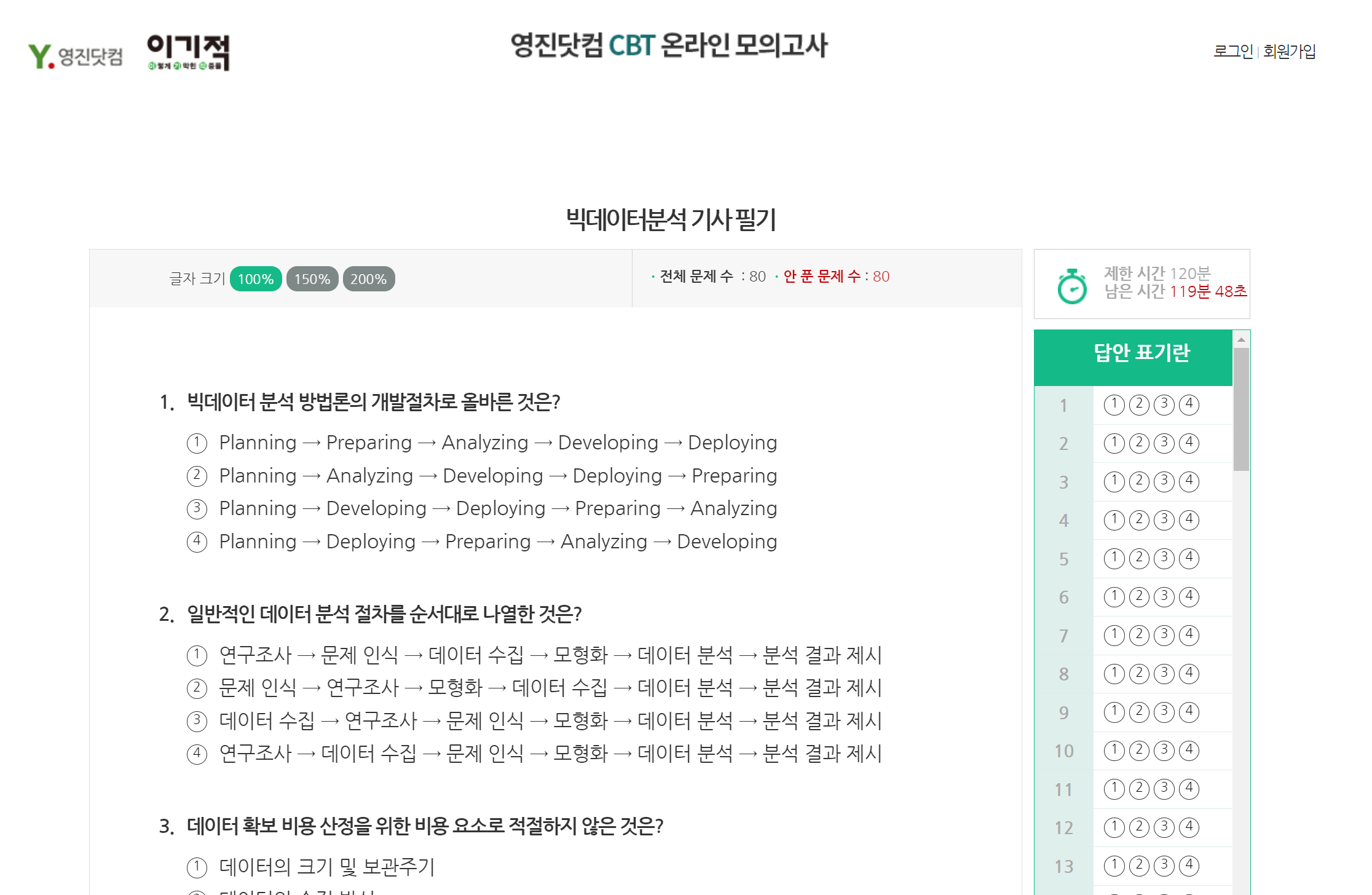 빅데이터 분석기사 필기 온라인 CBT 링크 (클릭)