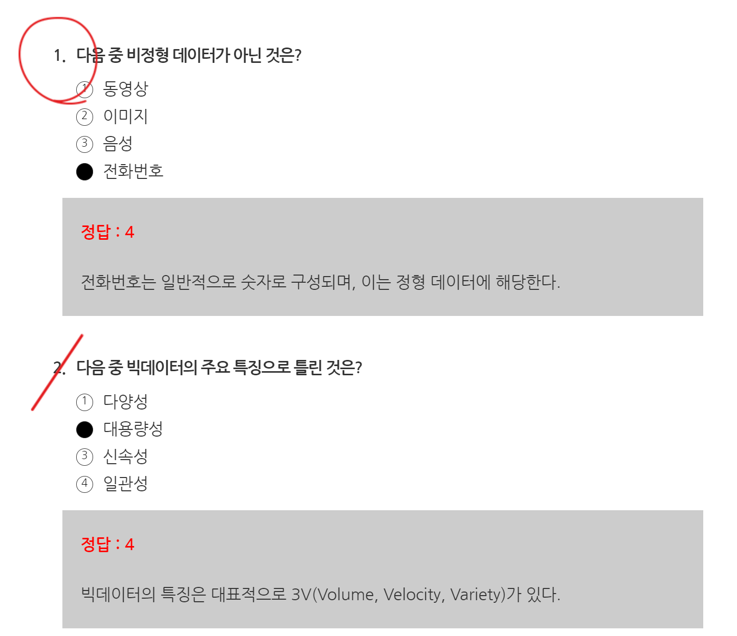 - 내가 제출했던 답안과 실제 답안과 해설까지 보여줍니다.