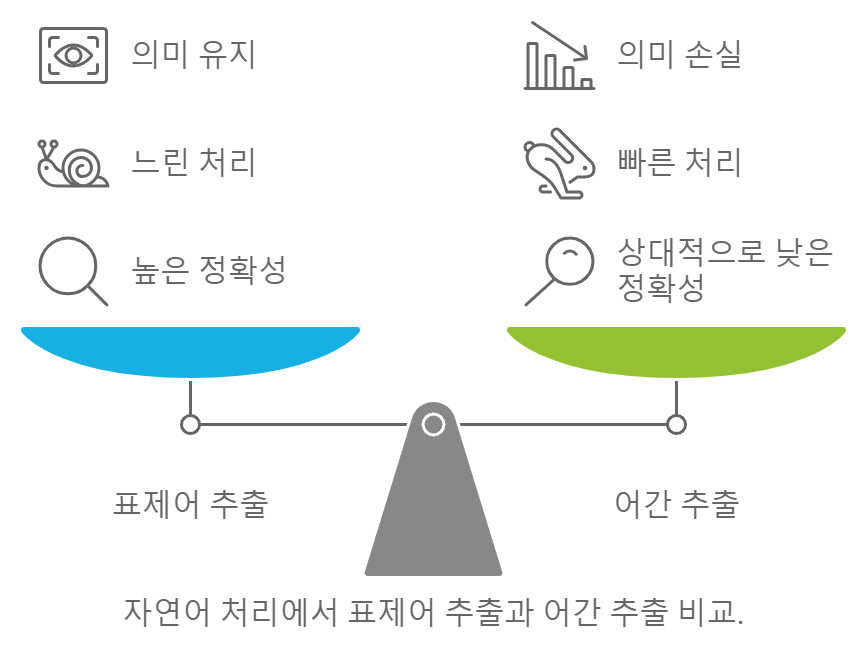 | 의미 유지 | 문맥과 의미를 유지 | 의미 손실 가능 |